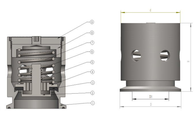 工作介質:氣體. 內部設計壓力;由彈簧控制